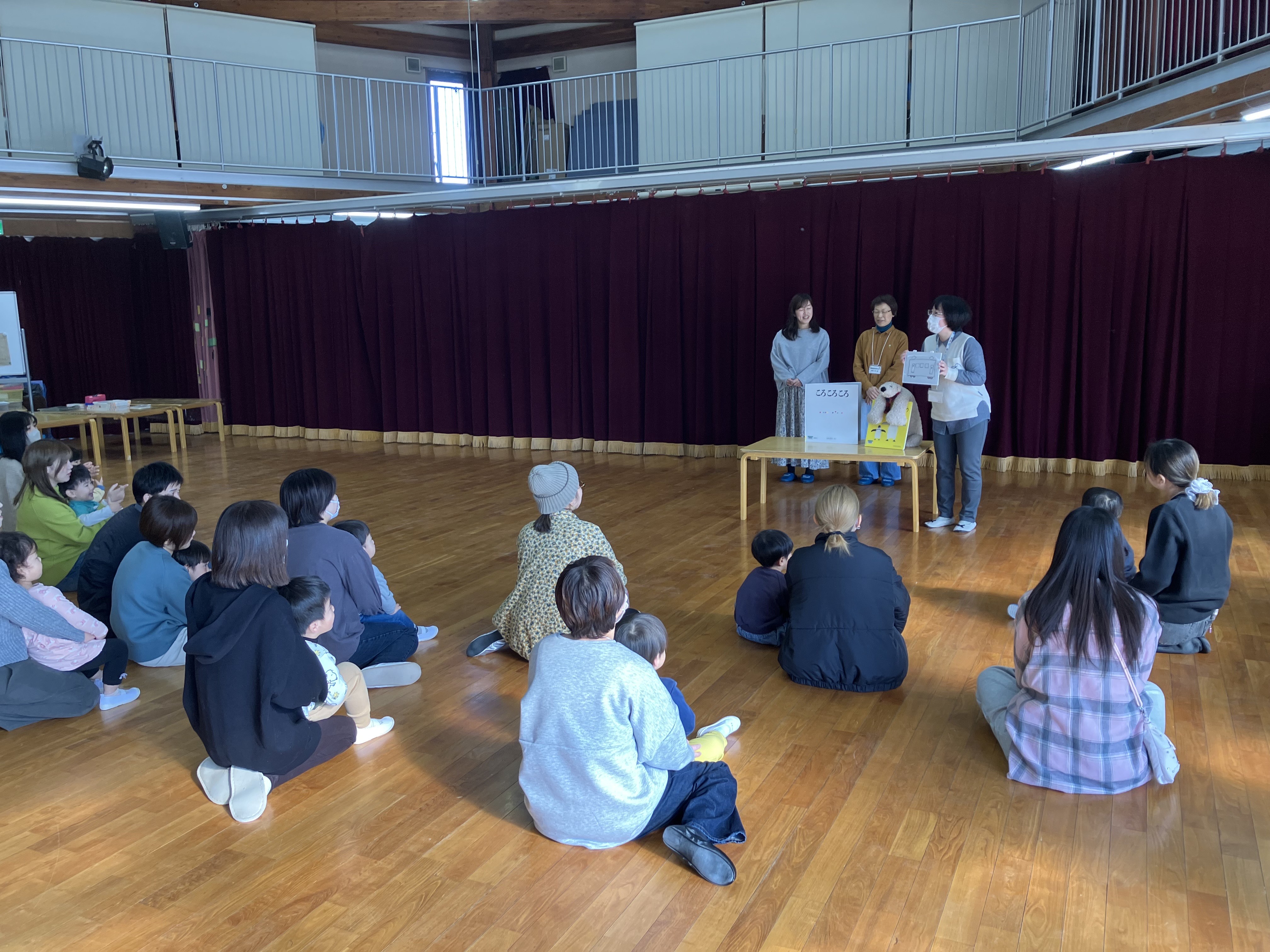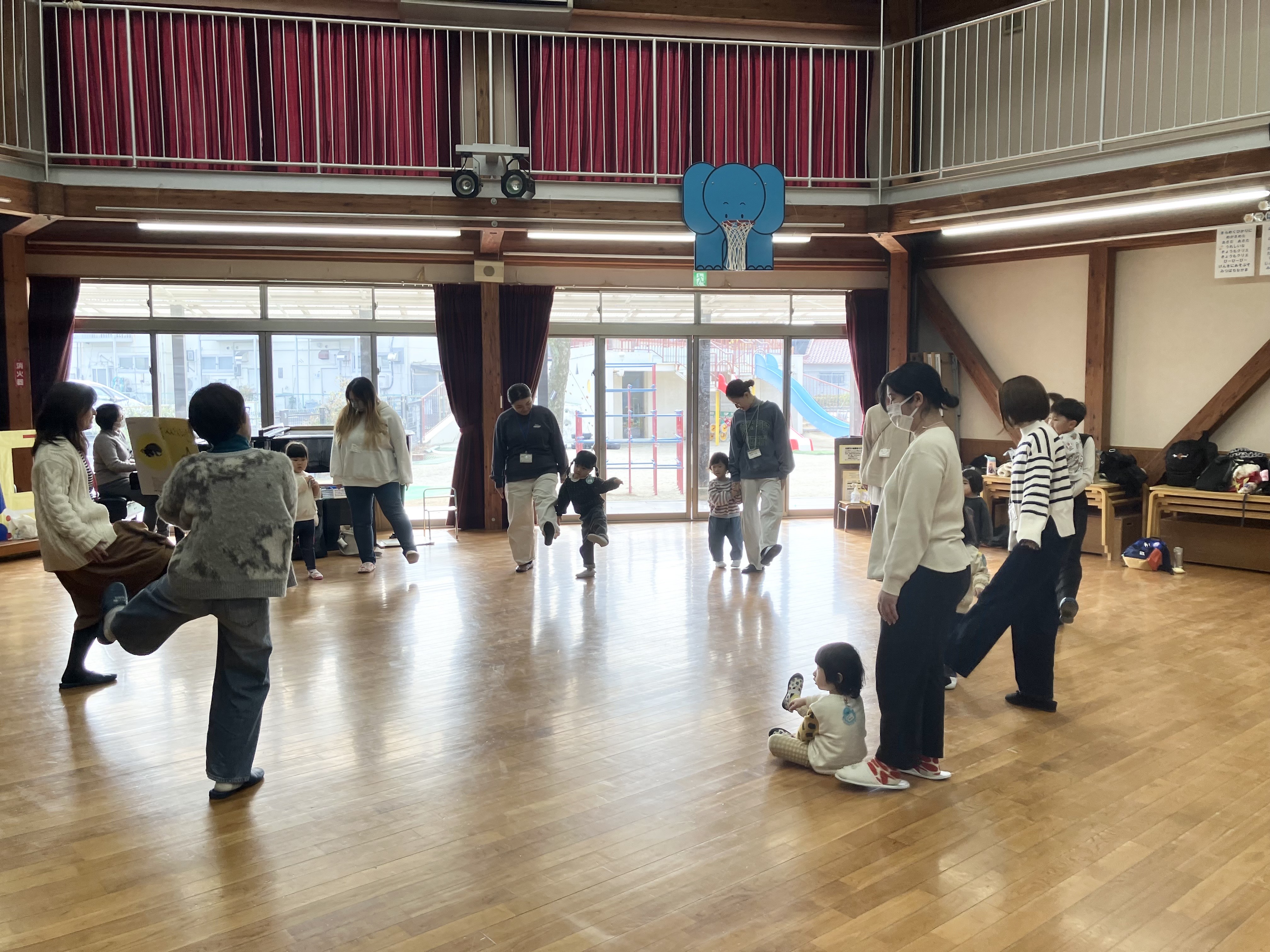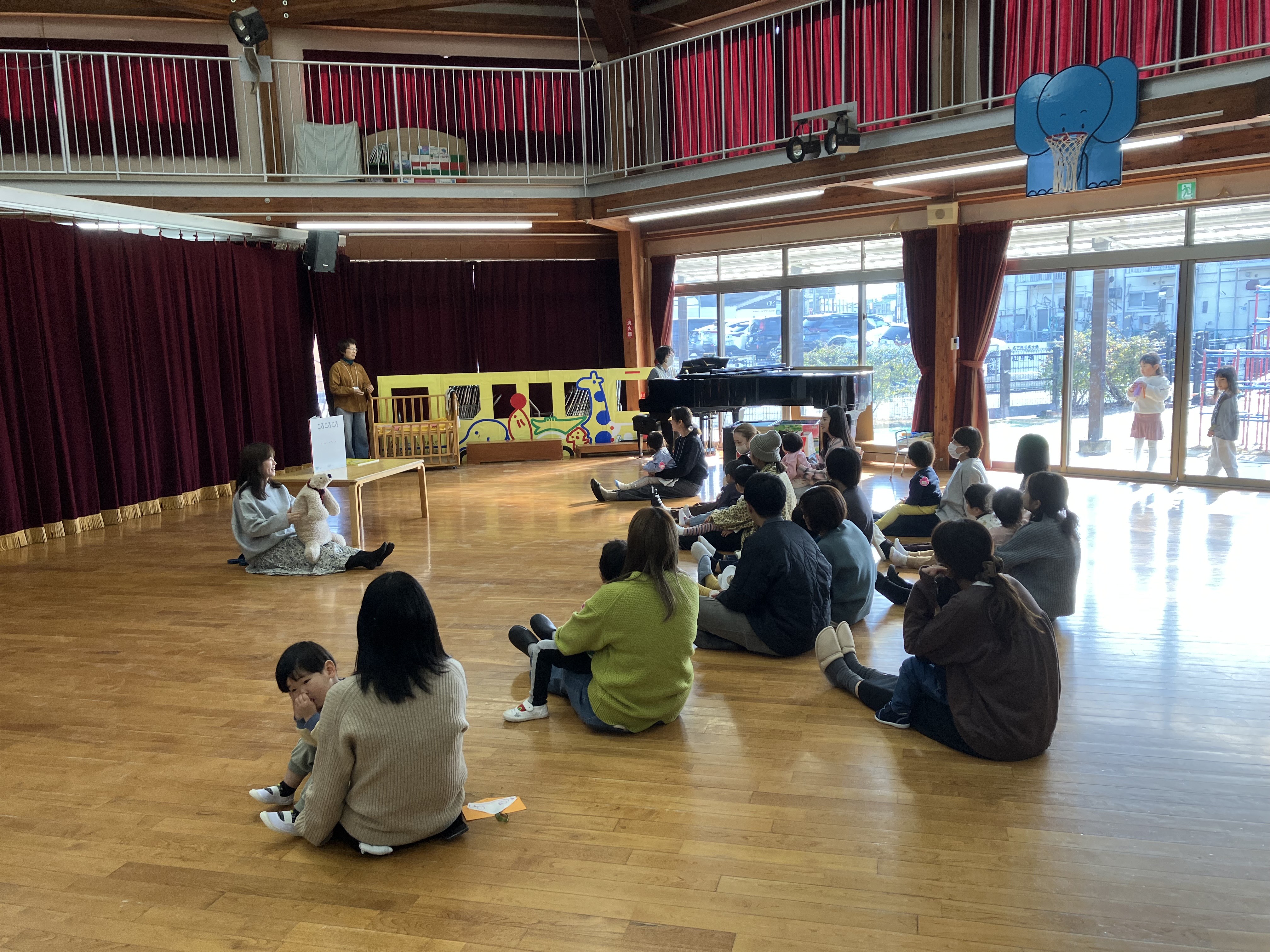 一月のひよこ組は盛り沢山。卒園児のお母さんサポーターズによるピアノでの親子遊び、絵本の読み聞かせ、ペンギン体操。