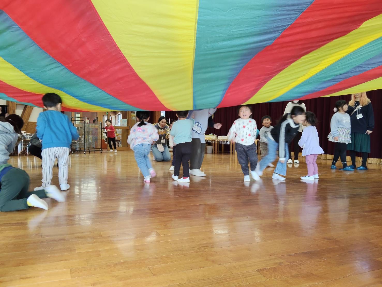 子どもたちは元気一杯。今日もお父さん、お母さんとたくさん遊びました。